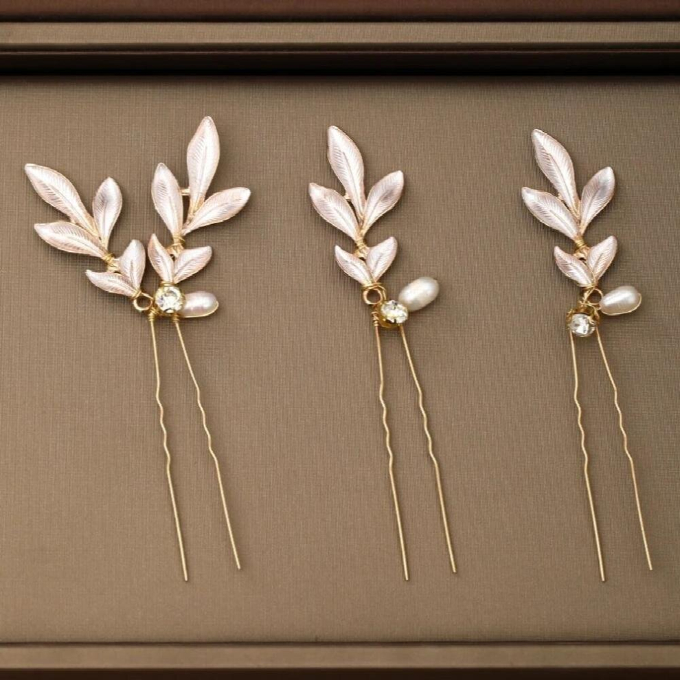 Gold Hair Pins Wedding Bridal Leaves Hair Clips Barrettes Bobby Pins Bride Bridesmaids Prom Formal Headpieces Bun Updo Hair Accessories for Women Girls