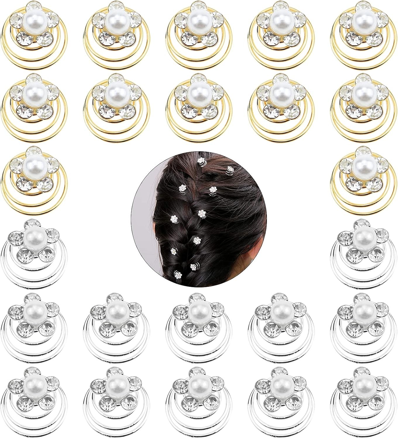 24 Pcs Spiral Hair Pins, Bridal Hair Clips, Crystal Pearls Swirl Hair Pins Swir