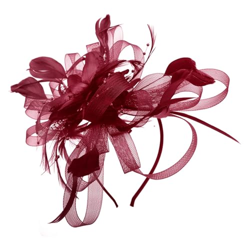Women Mesh Flower Fascinator Hat Net Veil Wedding Party Feather Hat Retro Headband Cocktail Tea Bridal Shower Hair Clips Sinamay Pillbox Hat Church Head Piece Headwear Wine Red
