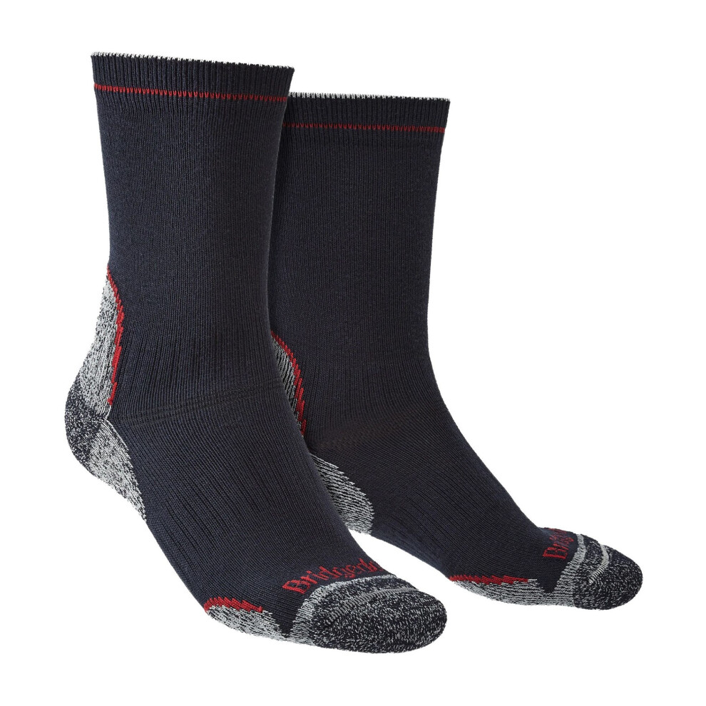 BRIDGEDALE Men's Hike Lightweight T2 Coolmax Performance Socks, Navy/Red, UK L