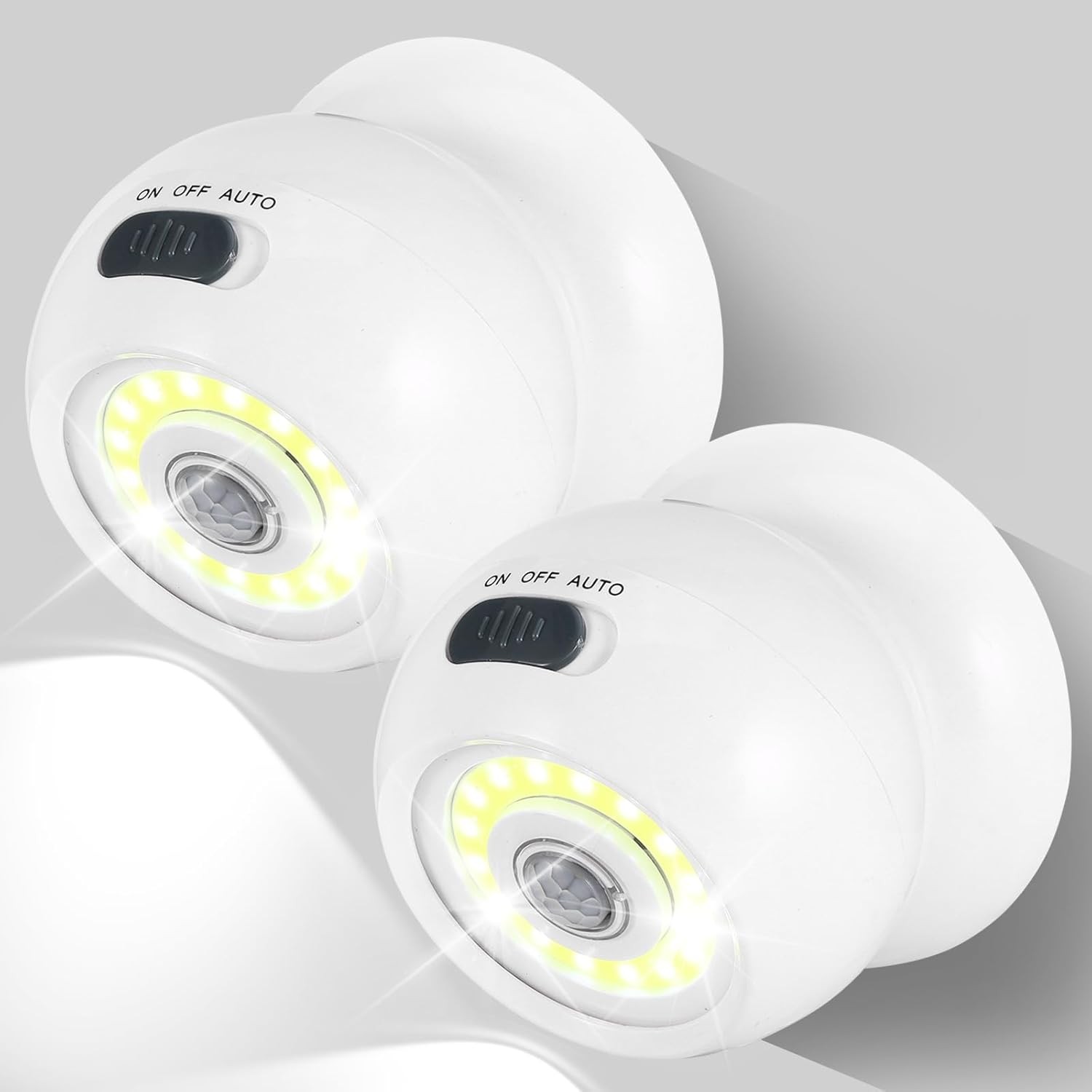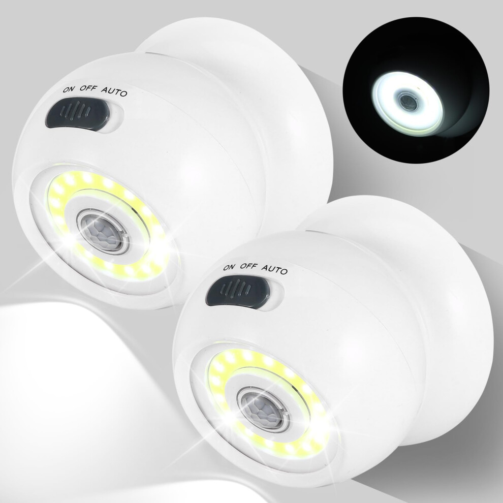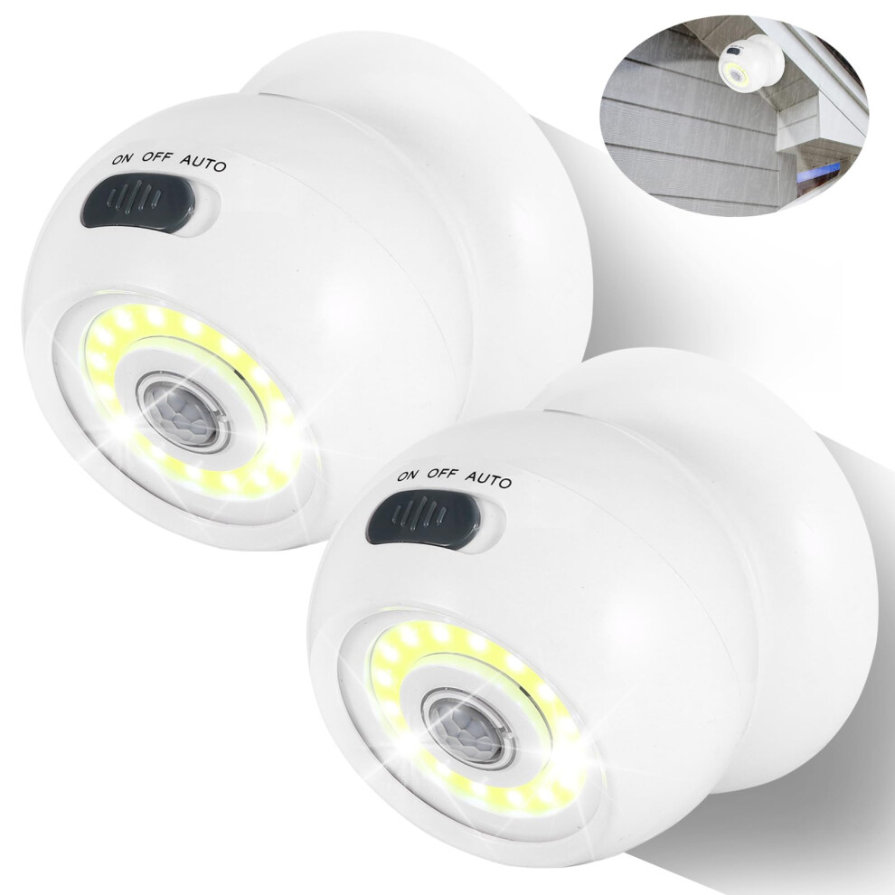 Kinberry 2 Pack PIR Motion Sensor Night Light, Wireless 360 Bright Ball Light, Battery Operated Security Lights, Auto On/Off, Easy Installation, for
