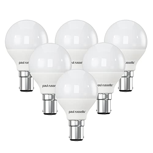 paul russells LED Golf Ball Light Small Bayonet Cap B15, 40w Equivalent Bulb, 4.9W 470Lumens LED Bulbs, 2700K Bright Warm White, Mini Globe Frosted G45 SBC Energy Saving (Not Dimmable) Lamps, 6 Pack