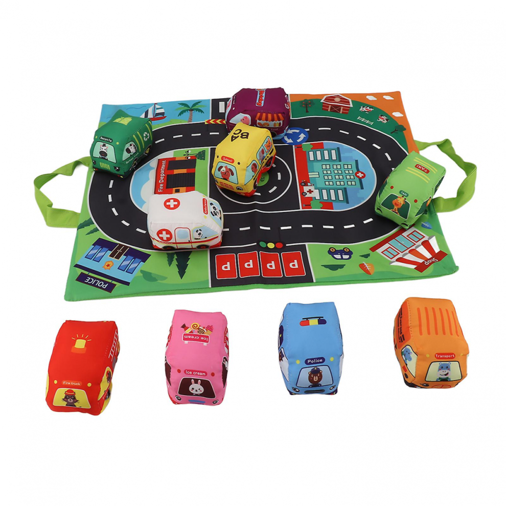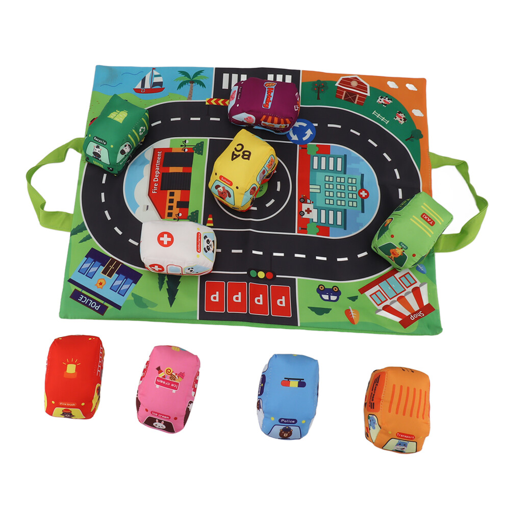 Cygmophing Baby Soft Toy Set with Play Mat Bright Color Sound Paper Multifunctional Toddler Cloth Toy Set (Cloth Car Set)