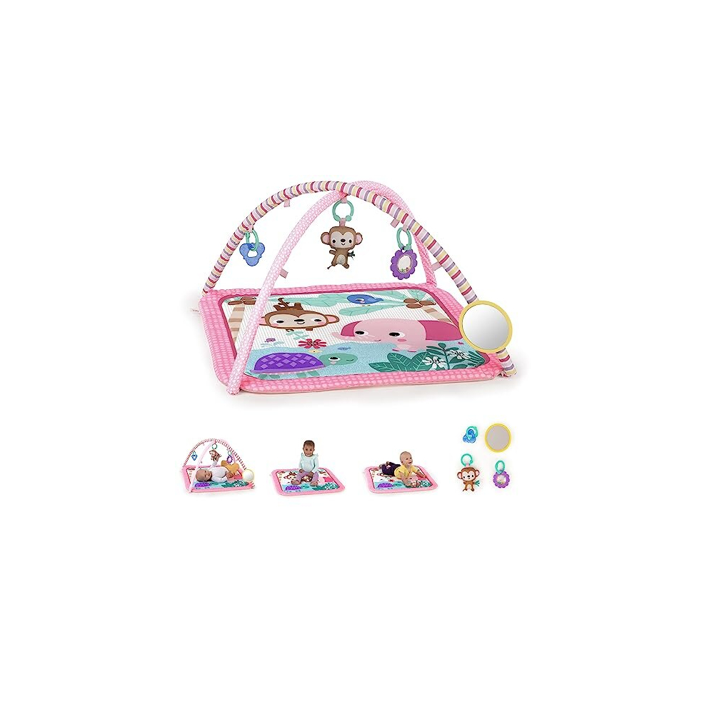 BRIGHT STARTS Folding Baby Gym Play Mat - Jungle Rose - with Sensory and Musical Toys, Mirror