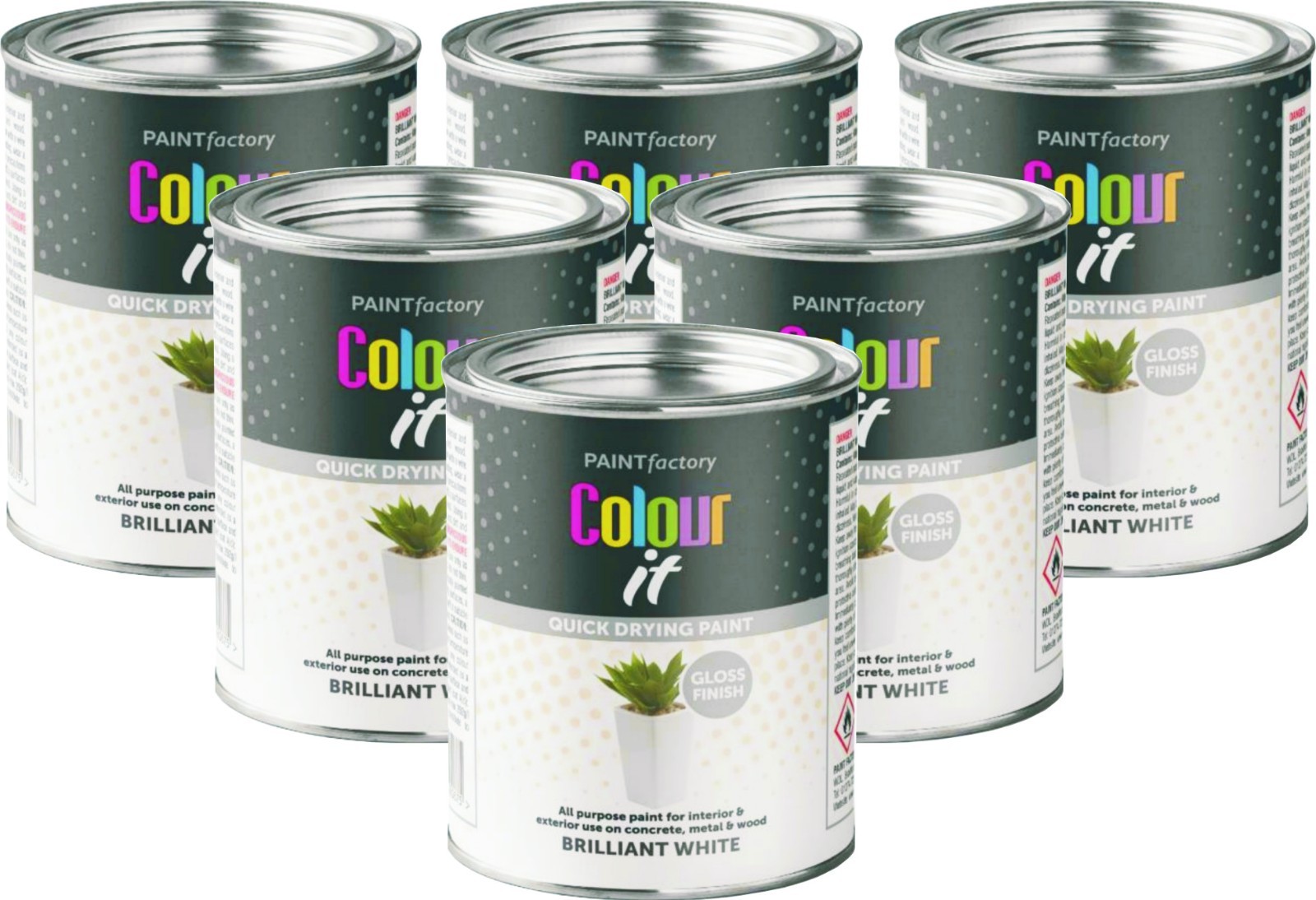 6 x Paint Factory Brilliant White Gloss Tin Paint Fast Drying 300ml