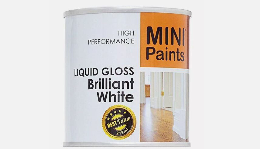 Brilliant White Liquid Gloss Mini Paint 215ml Exterior Interior Use On Wood