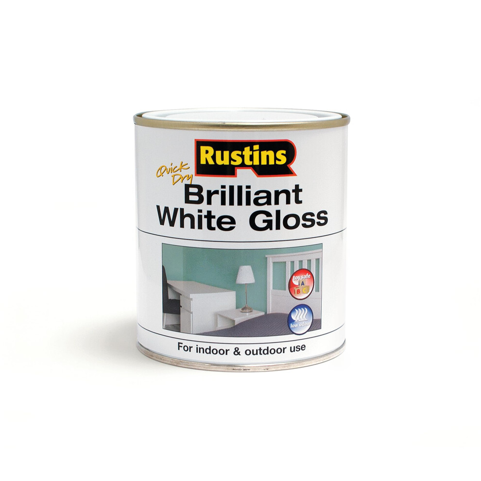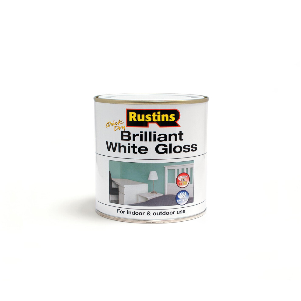 Brilliant White Gloss Paint Rustins Quick Dry 500ml For Indoor and Outdoor Use