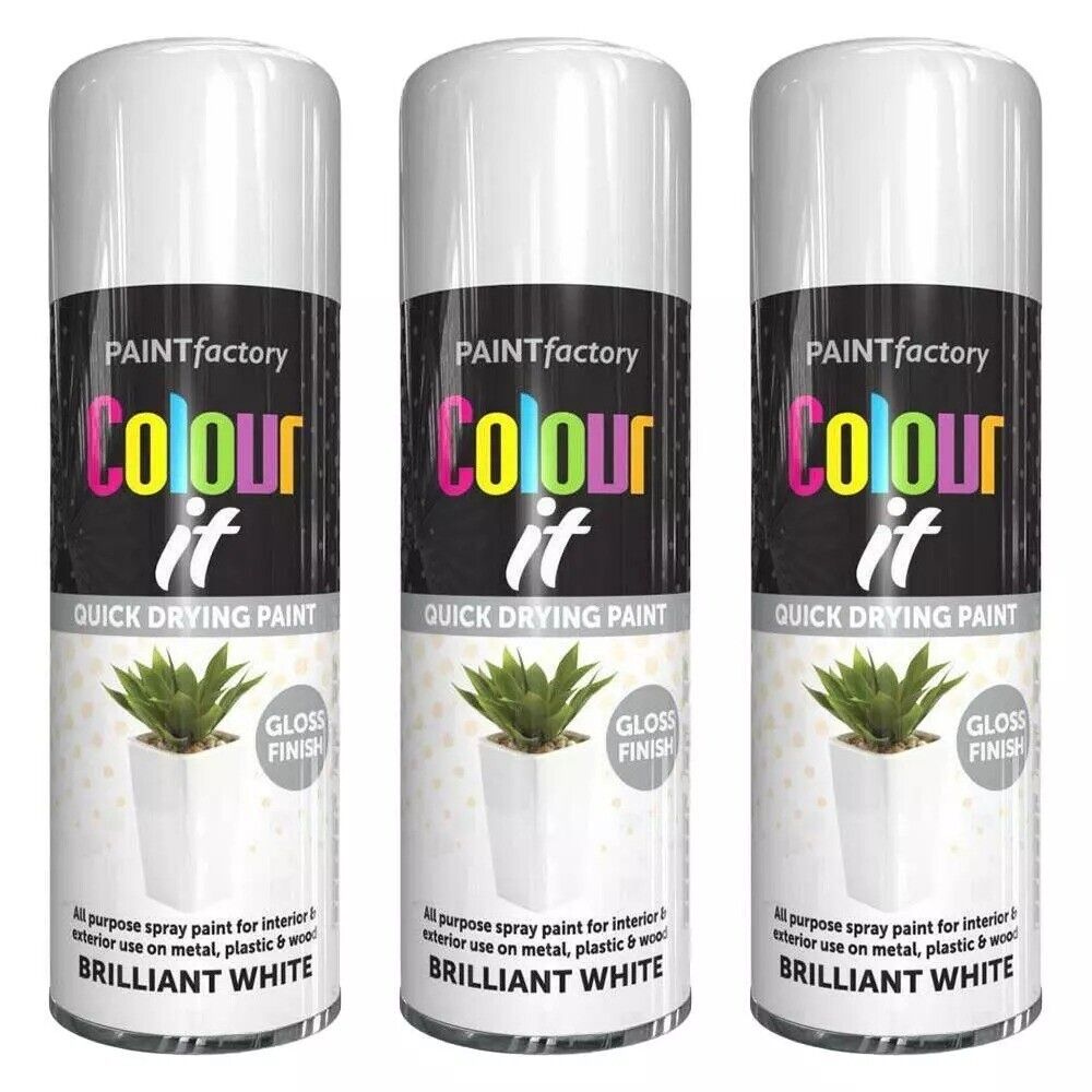 3X Brilliant White Gloss Spray Paint Aerosol Auto Car Lacquer Wood Metal 400ml