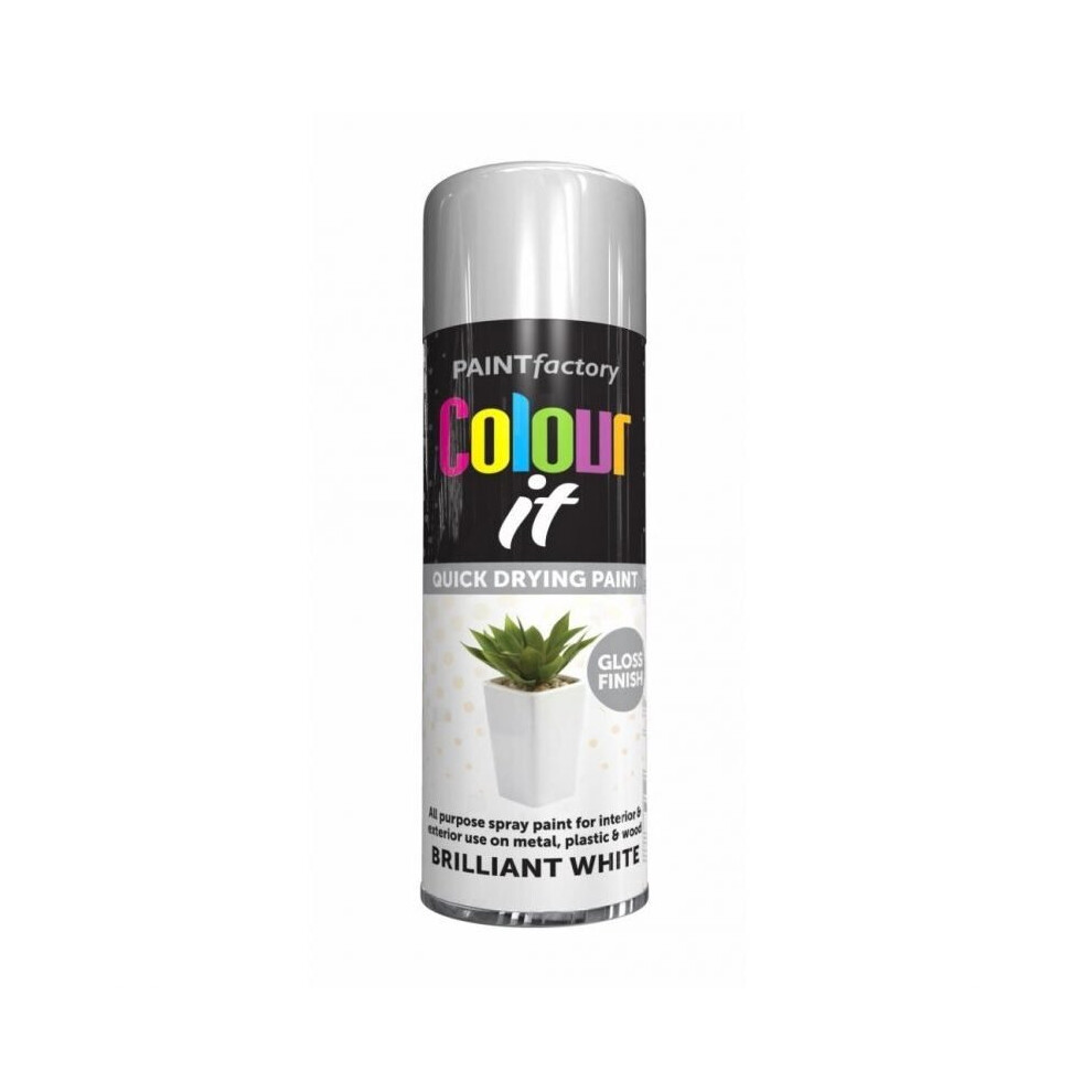 Colour It Brilliant White Gloss Spray Paint 250ml (7133) - Fast-Drying, Versatile for Furniture & More