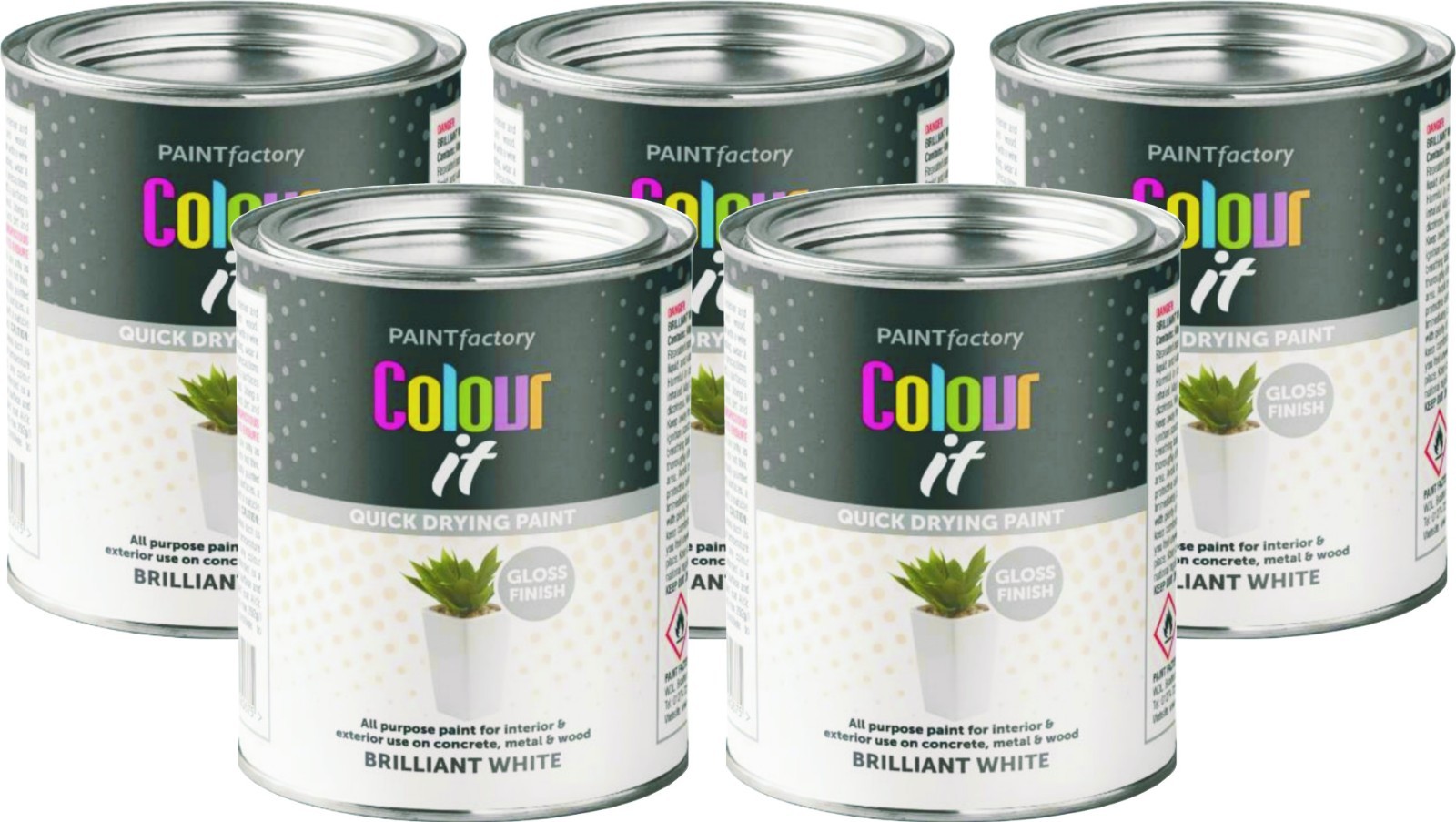 5 x Paint Factory Brilliant White Gloss Tin Paint Fast Drying 300ml