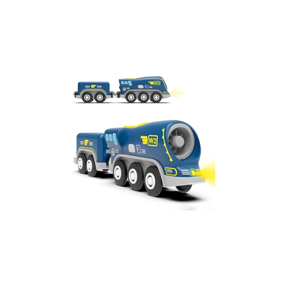 Train Toys Battery Operated Locomotive Train for Wooden Track, Motorized Train for Toddlers with Magnetic Connection, Compatible with Thomas, Brio, Chuggington, Melissa and Doug