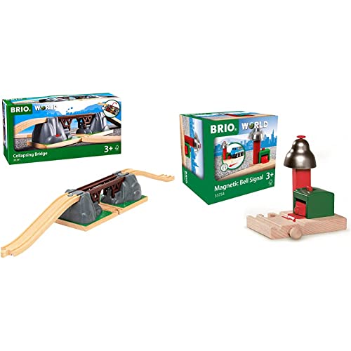 BRIO World Collapsing Bridge for Kids Age 3 Years Up & World Magnetic Railway Bell Signal for Kids Age 3 Years Up - Compatible with all BRIO Train Sets & Accessories