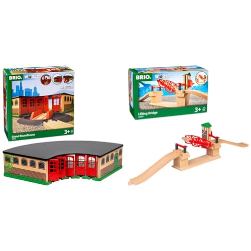 BRIO World Grand Roundhouse for Kids Age 3 Years Up & World Lifting Bridge for Kids Age 3 Years Up - Compatible With All Railway Train Sets and Accessories