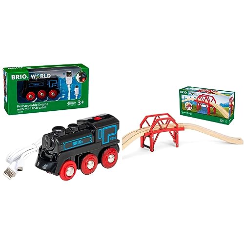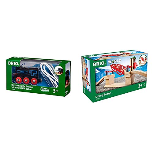 BRIO World Rechargeable Engine w mini USB cable for Kids Age 3 Years and Up & World Lifting Bridge for Kids Age 3 Years and Up, Compatible with all Train Sets