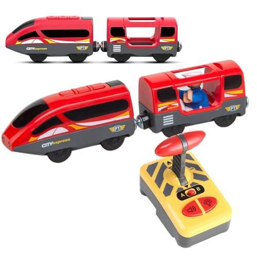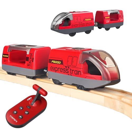 Motorized Train for Wooden Track, Remote Control Train with Magnetic Connection, Battery Operated Locomotive Train for Toddlers, Compatible with Thomas, Brio, Chuggington