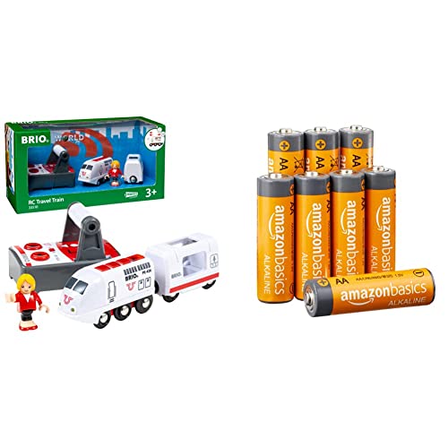 BRIO World Remote Control Travel Train Toy for Kids Age 3 Years Up & Amazon Basics AA 1.5 Volt Performance Alkaline Batteries - Pack of 8 (Appearance may vary)