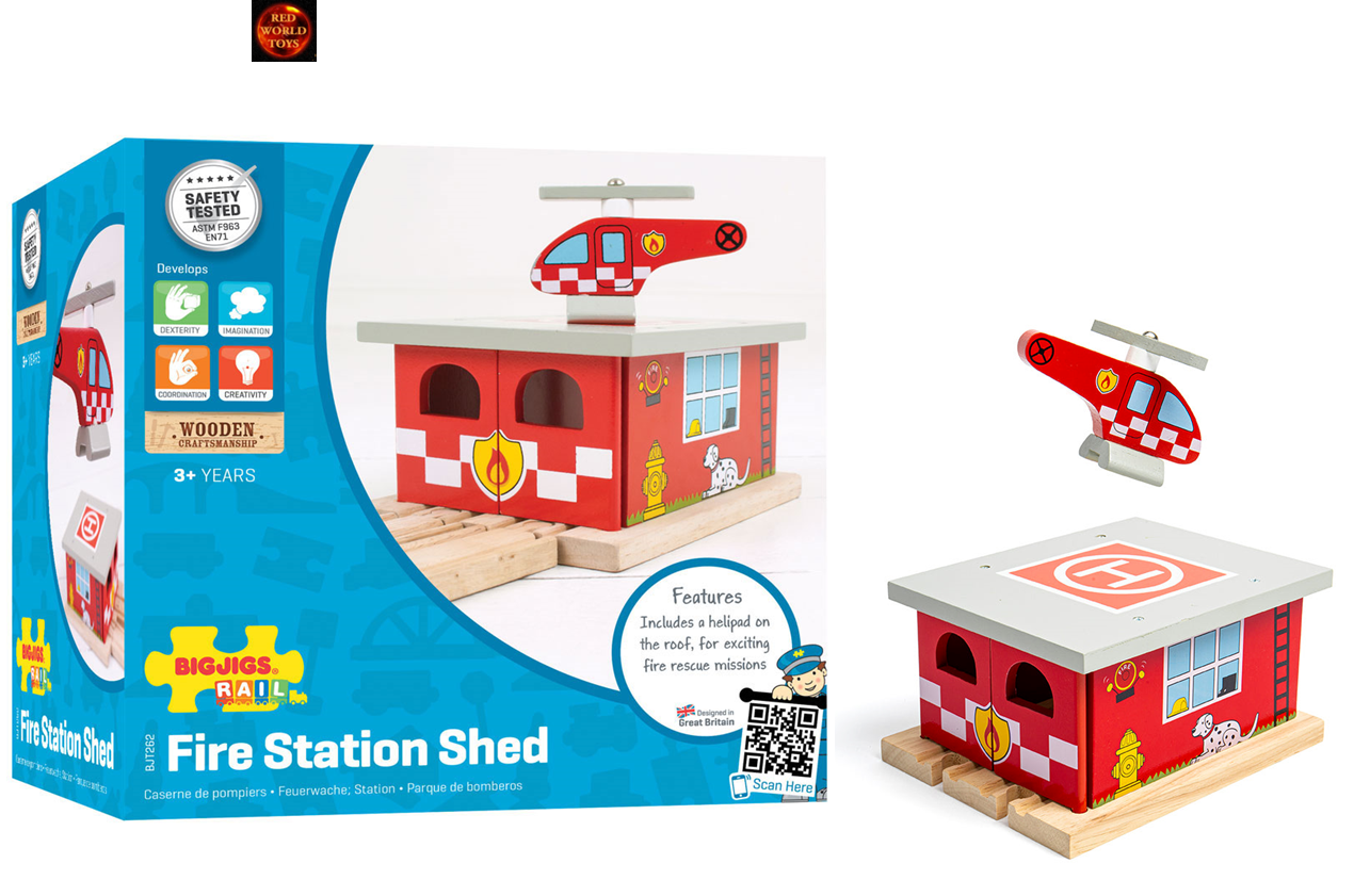Fire Station Shed Wooden Railway Train Track Accessory compatible Brio