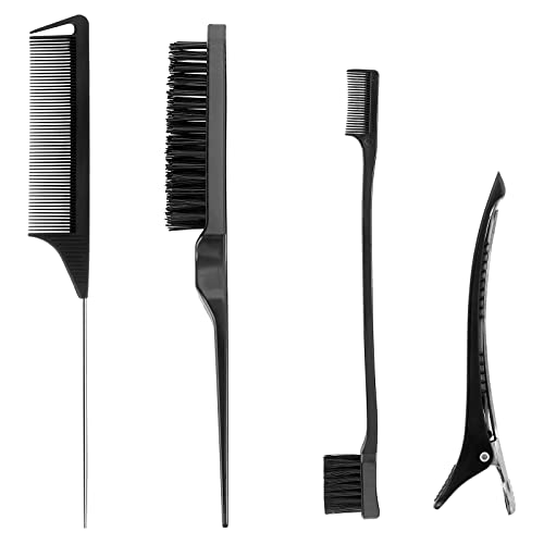 Slick Back Hair Brush Set Teasing Hair Brush Edge Control Brush Bristle Hair Brush Hair Styling Comb Set for Edge&Back Brushing, Combing for Women Kids Hair Stylying (Black,4 Pieces)