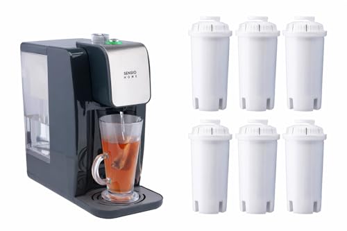 Bundle of Sensio Home Instant Hot Water Dispenser + Universal Water Filter Cartridges 6 Pack Replaces Brita Classic, Aqua Optima – 2.2L Variable Temperature Control, 5 Second Fast Boil Kettle Upgrade