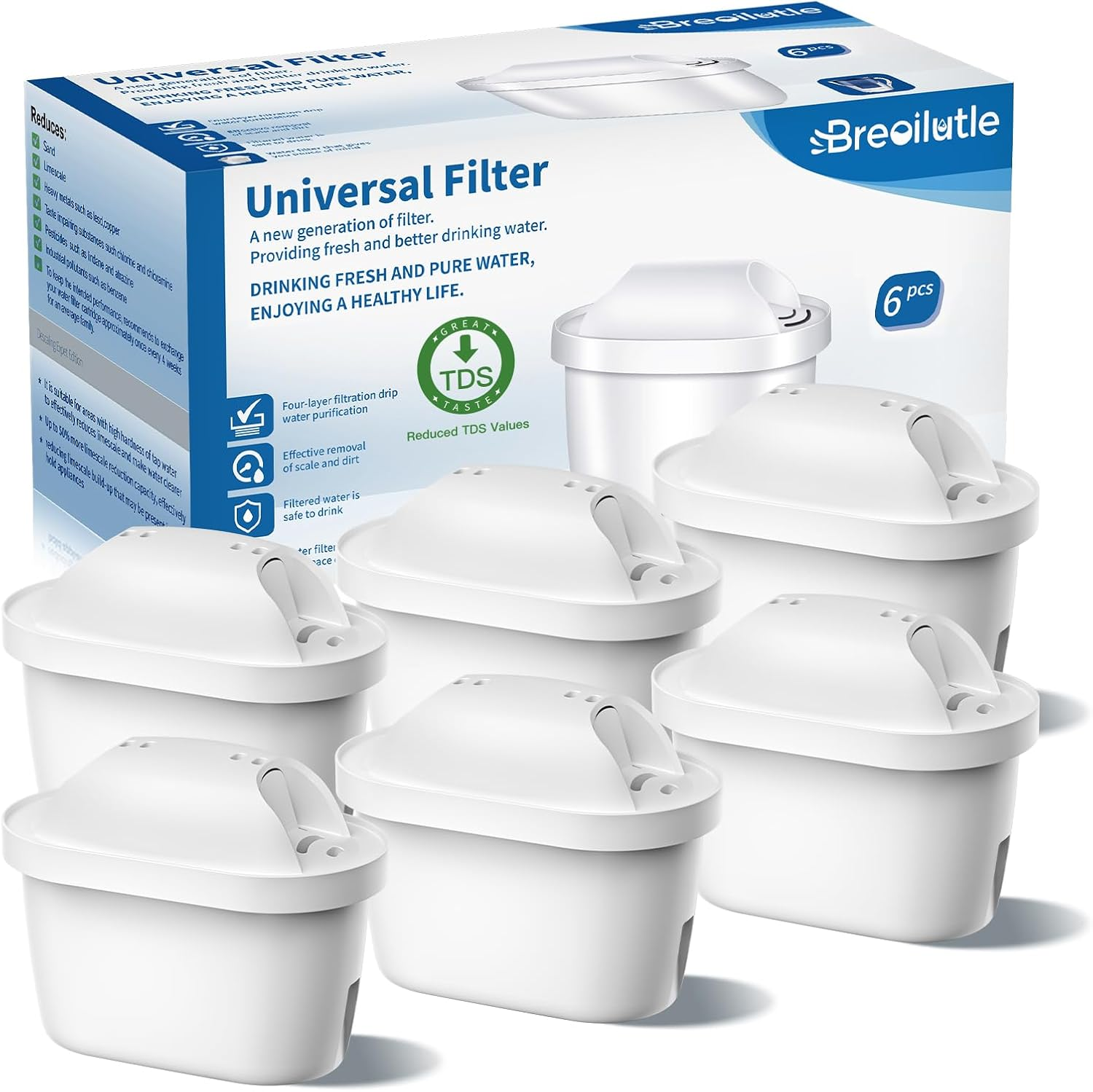 BREOILUTLE Water Filter Cartridges Compatible with Brita® Marella® Jug Kettle, BREOILUTLE Water Filter Replacement for Brita® Maxtra+® Plus Maxtra Pro® All-in-1 Reduces Impurities (6, Classic)