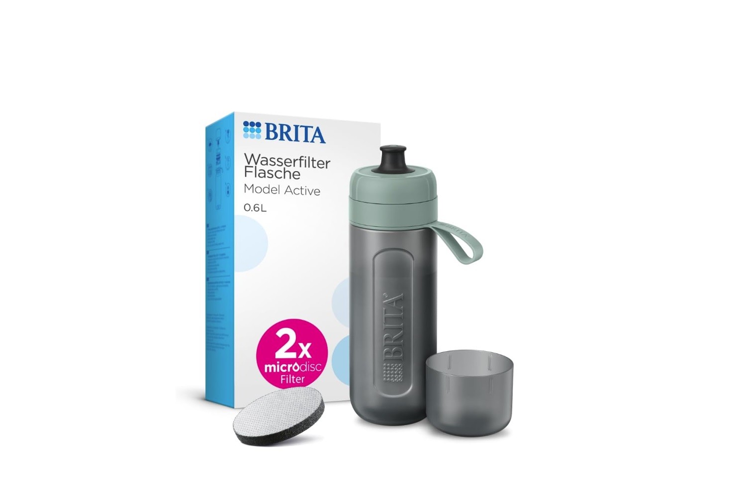 BRITA Sports Water Filter Bottle Model Active Dark Green (600Ml) Incl. 2X Microd