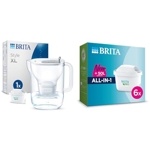 BRITA Style XL Water Filter Jug Grey (3.6L) incl. 1x MAXTRA PRO All-in-1 cartridge & MAXTRA PRO All-in-1 Water Filter Cartridge 6 Pack (NEW) - Original refill reducing
