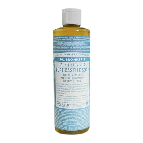Dr Bronner’s 4-in-1 Organic Unscented Baby Sugar Soap, Made with Organic Oils, Sugar and Shikakai Powder, For Hands, Body, Face & Hair, Fair Trade Certified & Vegan Friendly, 335ml Recycled Pump Bottle