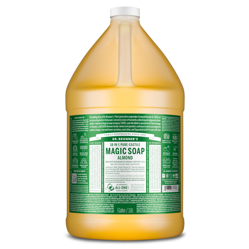 Dr. Bronner's Pure-Castile Magic Soap Liquid (Almond 1 Gallon) - Made with Regenerative Organic Certified Oils 18-in-1 Uses: Face Body Hair