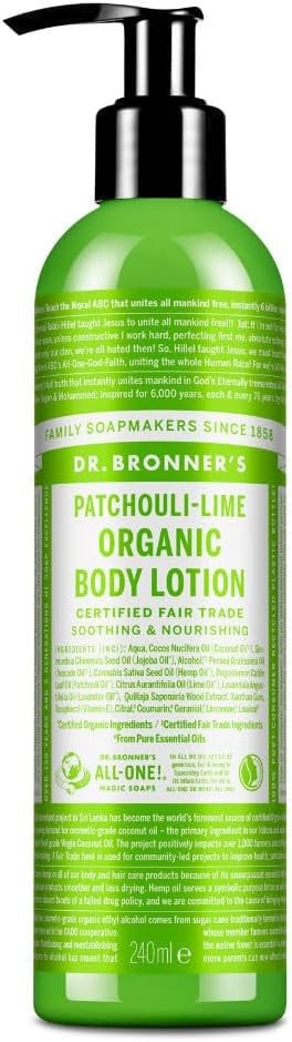 Dr Bronner's 3-in-1 Patchouli & Lime Organic Hand and Body Lotion, Made with Or
