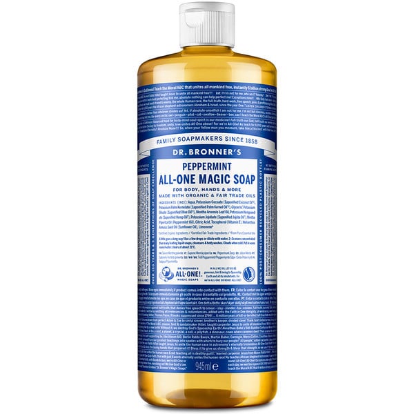 Dr Bronner's 18-in-1 Peppermint Pure-Castile Liquid Soap, 945 ml (Pack of 1)
