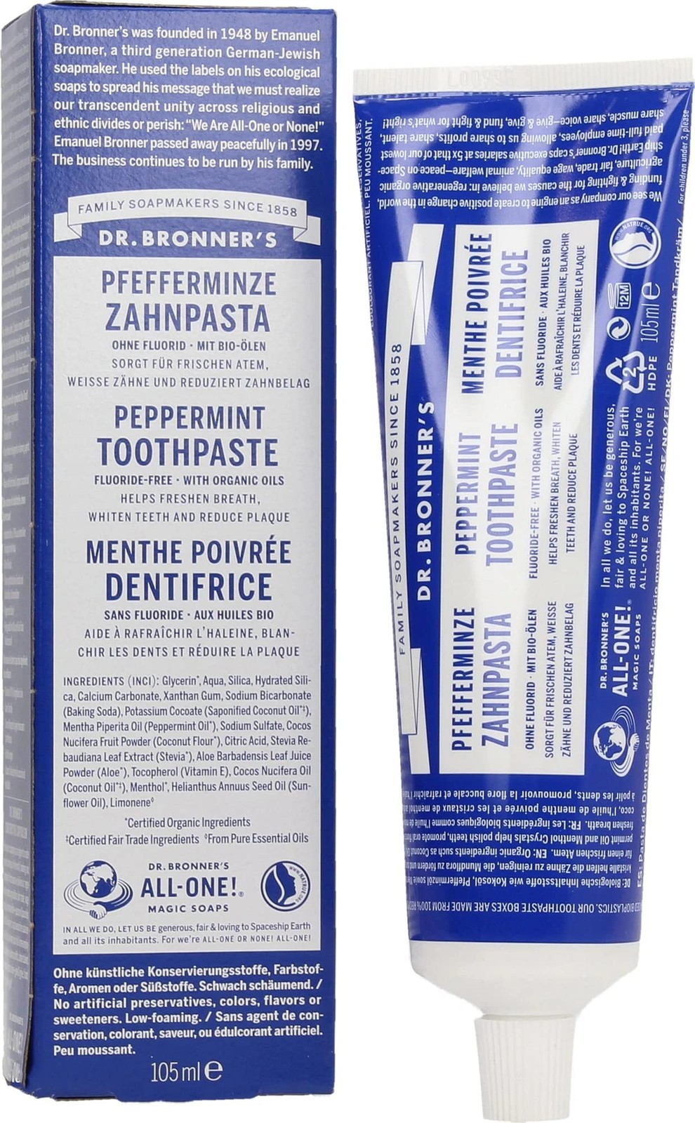 Dr Bronner'S All One Peppermint Toothpaste, Made with Organic, Fluoride-Free Ing