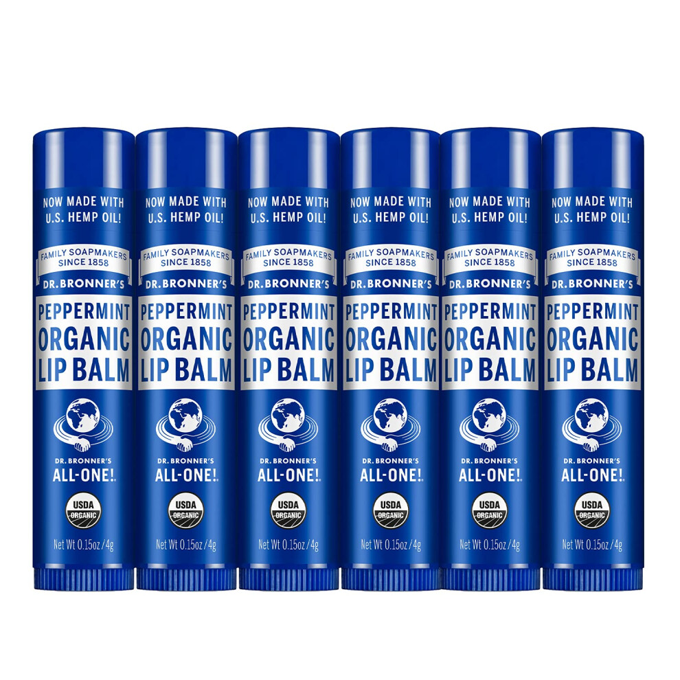 Dr. Bronner's - Organic Lip Balm (Peppermint 0.15 ounce 6-Pack) - Made with Organic Beeswax and Avocado Oil For Dry Lips Hands Chin or Cheeks Jo