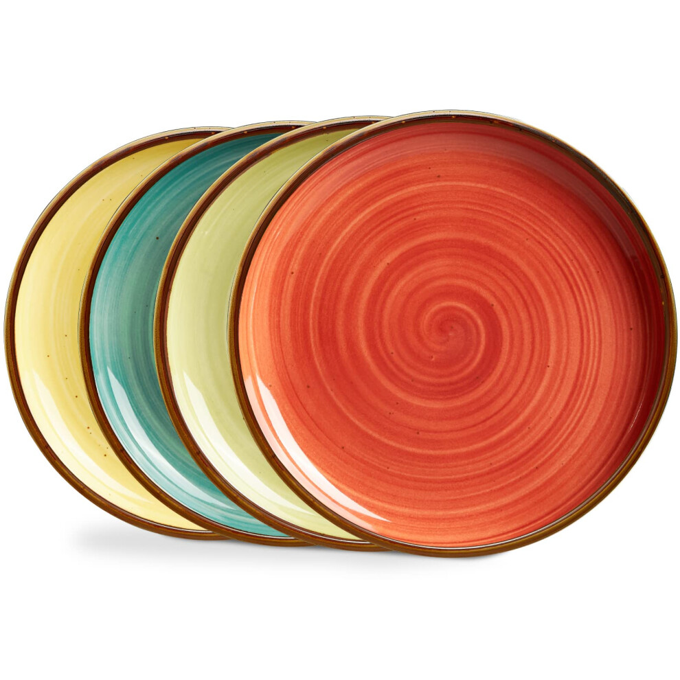 Porcelain Dinner Plates 10.5 Inch Set of 4 Rustic Bronze Edge Ceramic Microwave Dishwasher Safe