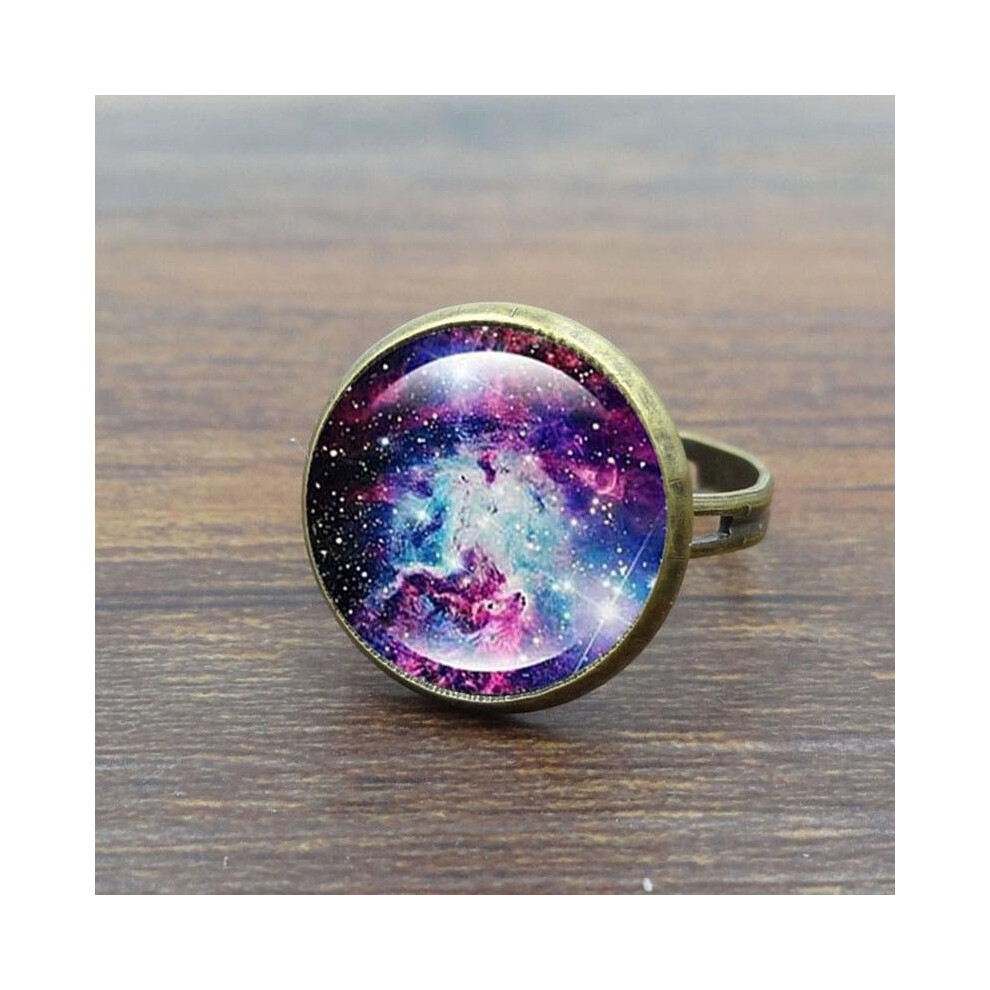 XUSHUI XJ Galaxy Space Glass Cabochon rings for women men fashion Jewelry Antique Bronze Vintage ring adjustable