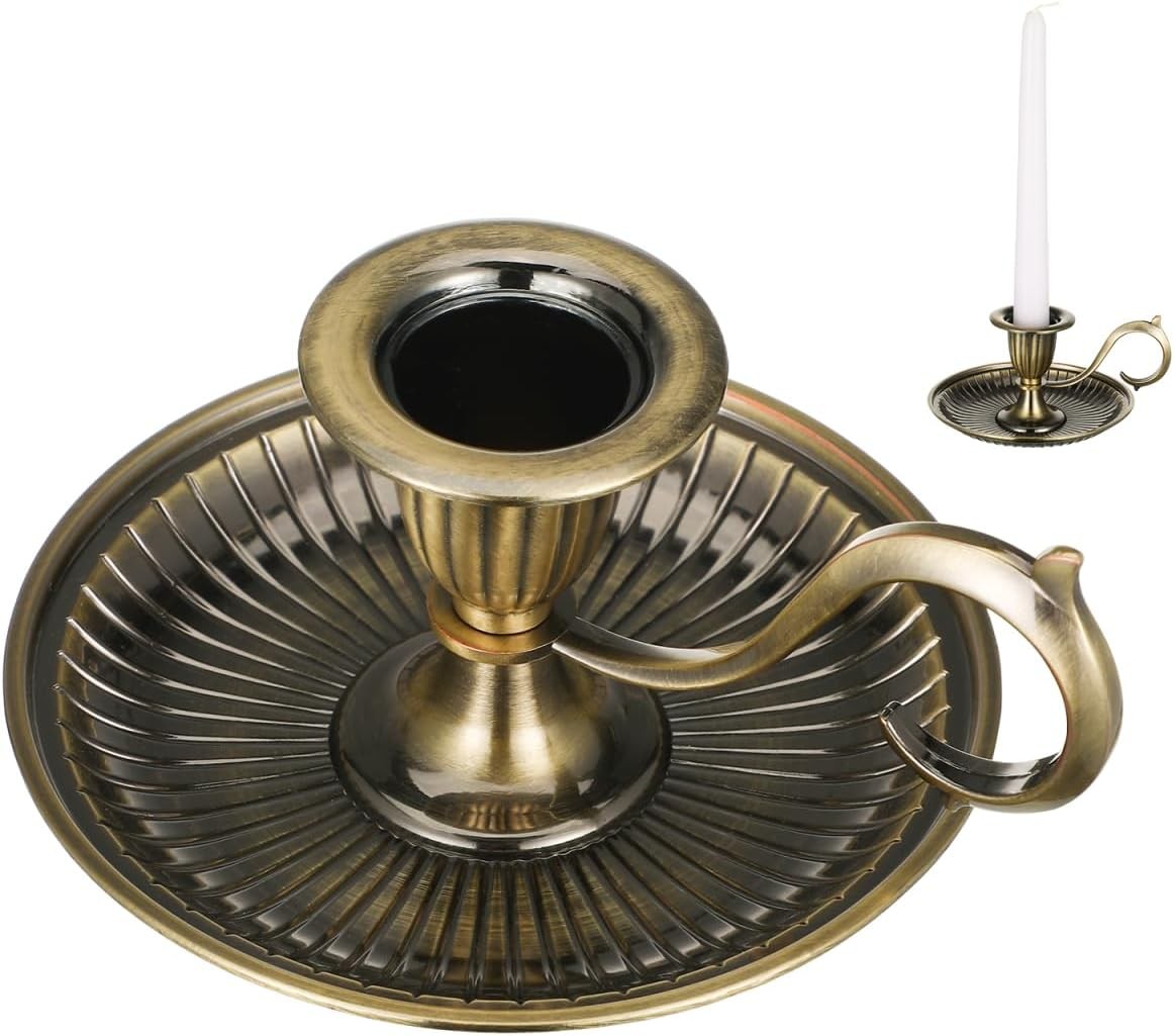 Taper Candle Holder with Finger Ring Bronze Taper Candle Holder, Vintage Metal