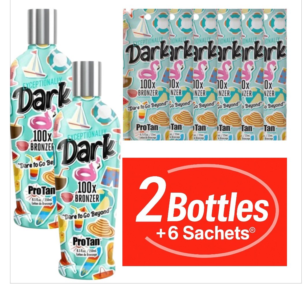 Pro Tan EXCEPTIONALLY DARK Sunbed Tanning Bronzing Lotion 2 Bottles + 6 Sachets☀
