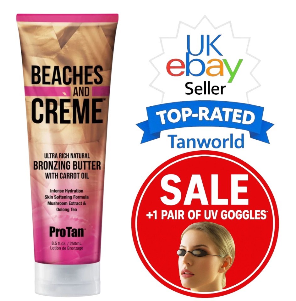 Pro Tan Beaches & Creme Natural Dark Tanning Sunbed Bronzing Lotion + Googles