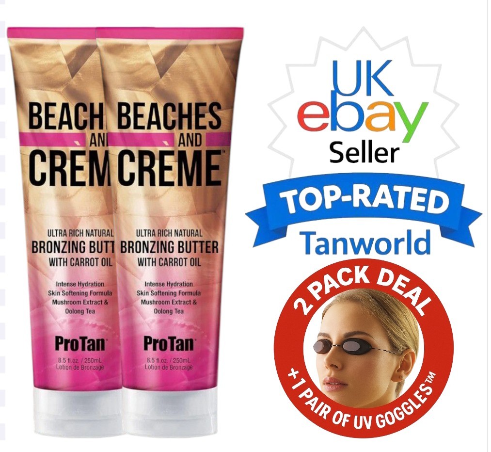 2x Pro Tan Beaches & Creme Natural Dark Tanning Sunbd Bronzing Lotion + Goggles