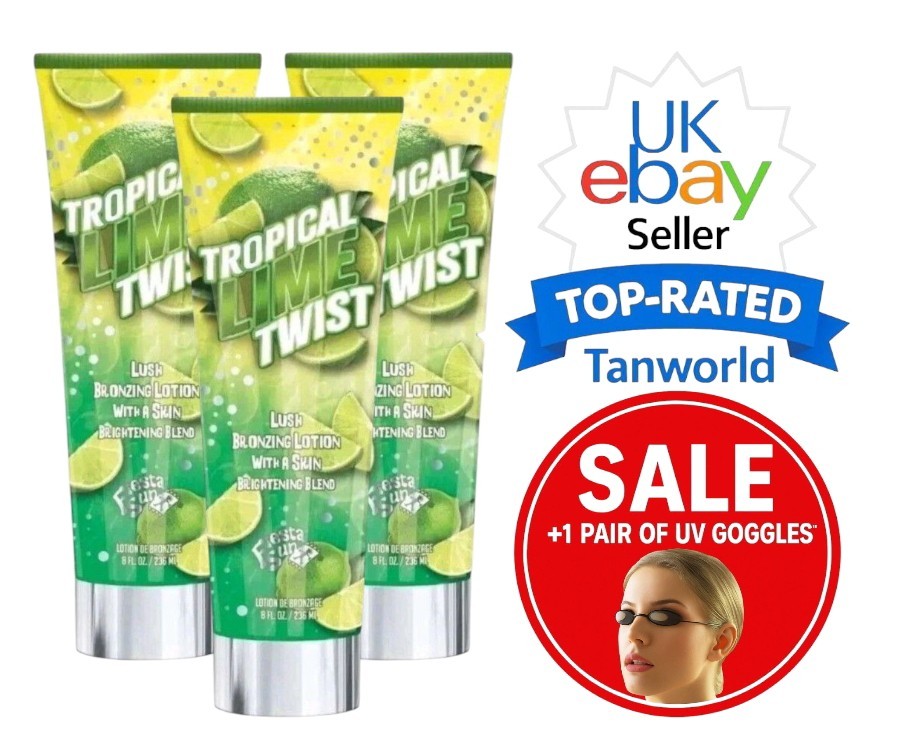 3 x Fiesta Sun Tropical Lime Twist Lush Sunbed Bronzing Tanning Lotion + Goggle