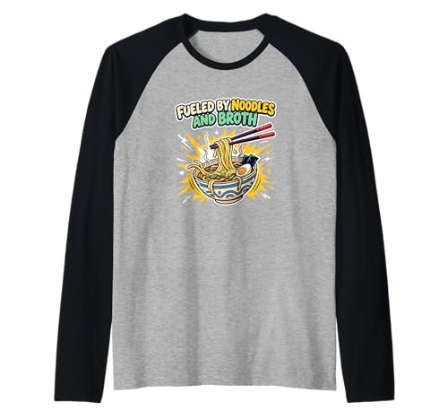 Fueled By Noodles and Broth Ramen Lover Raglan Baseball Tee