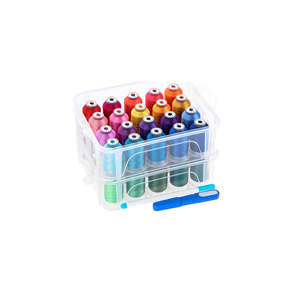 40 Brother Colours 500m Machine Embroidery Thread with Clear Plastic Storage Box for Embroidery Sewing Machine