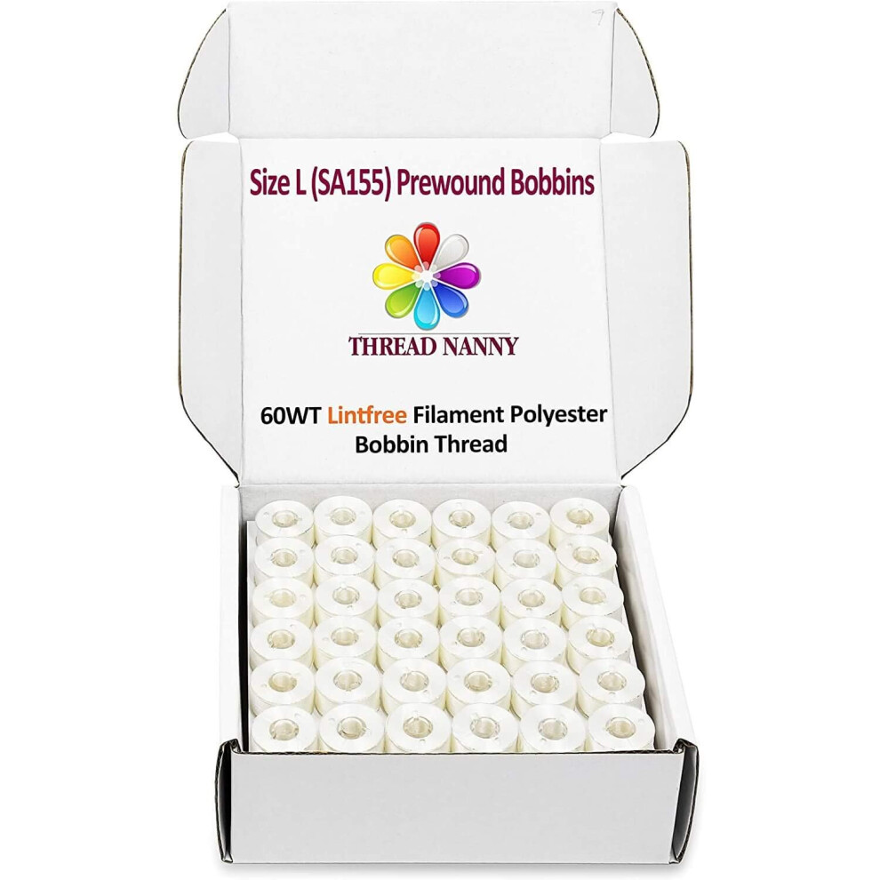 ThreadNanny 144pcs White Prewound Bobbin Thread Plastic Size L (SA155) for Brother Embroidery and Sewing Machine Polyester Thread