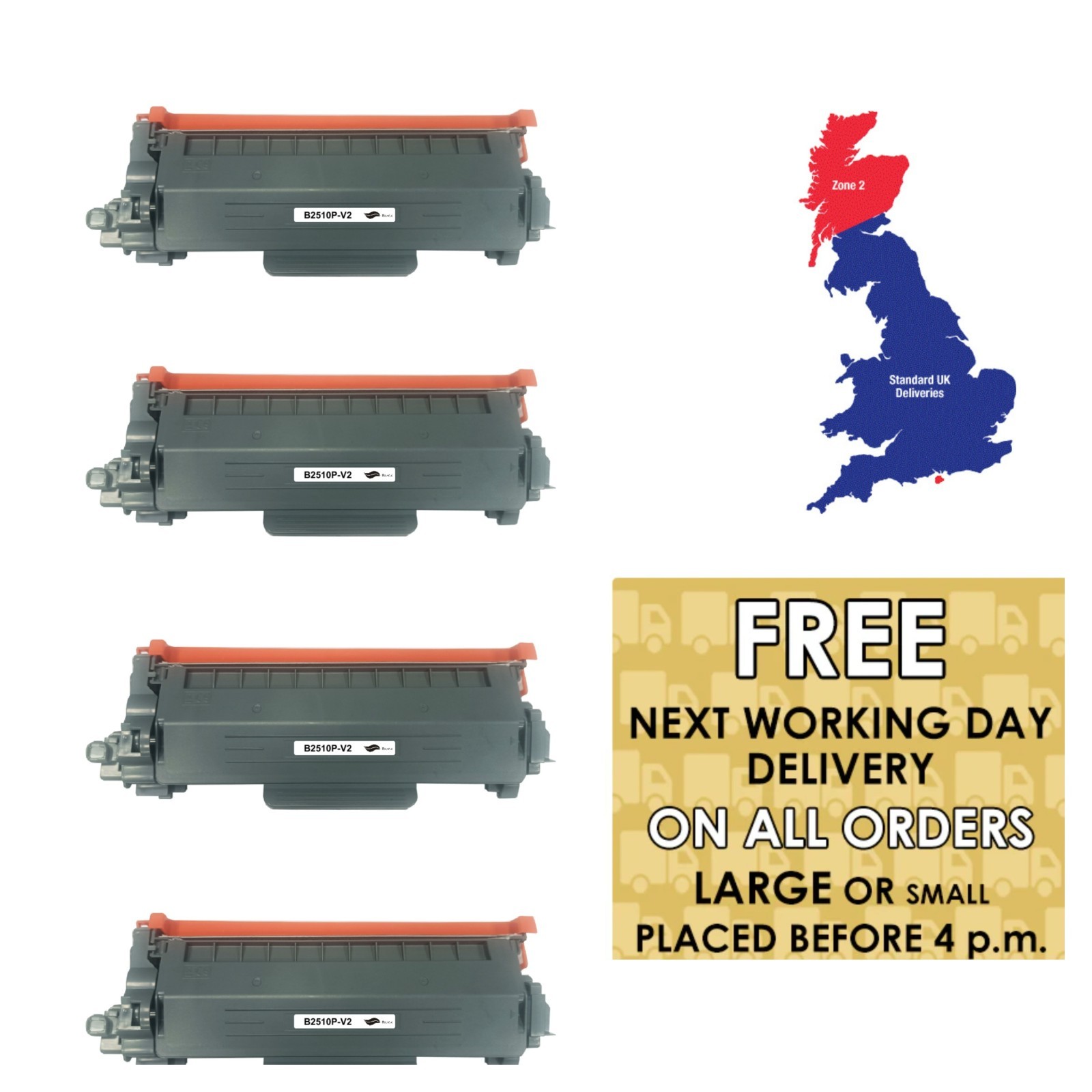 Toner For Brother HL-L2400DWE Printer TN2510 Black Cartridge Compatible x 4