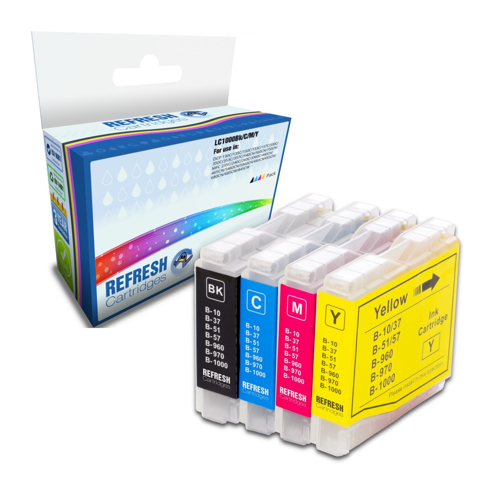 Compatible 4 Colour Brother Lc1000 Multipack Ink Cartridges Lc1000bk/m/c/y