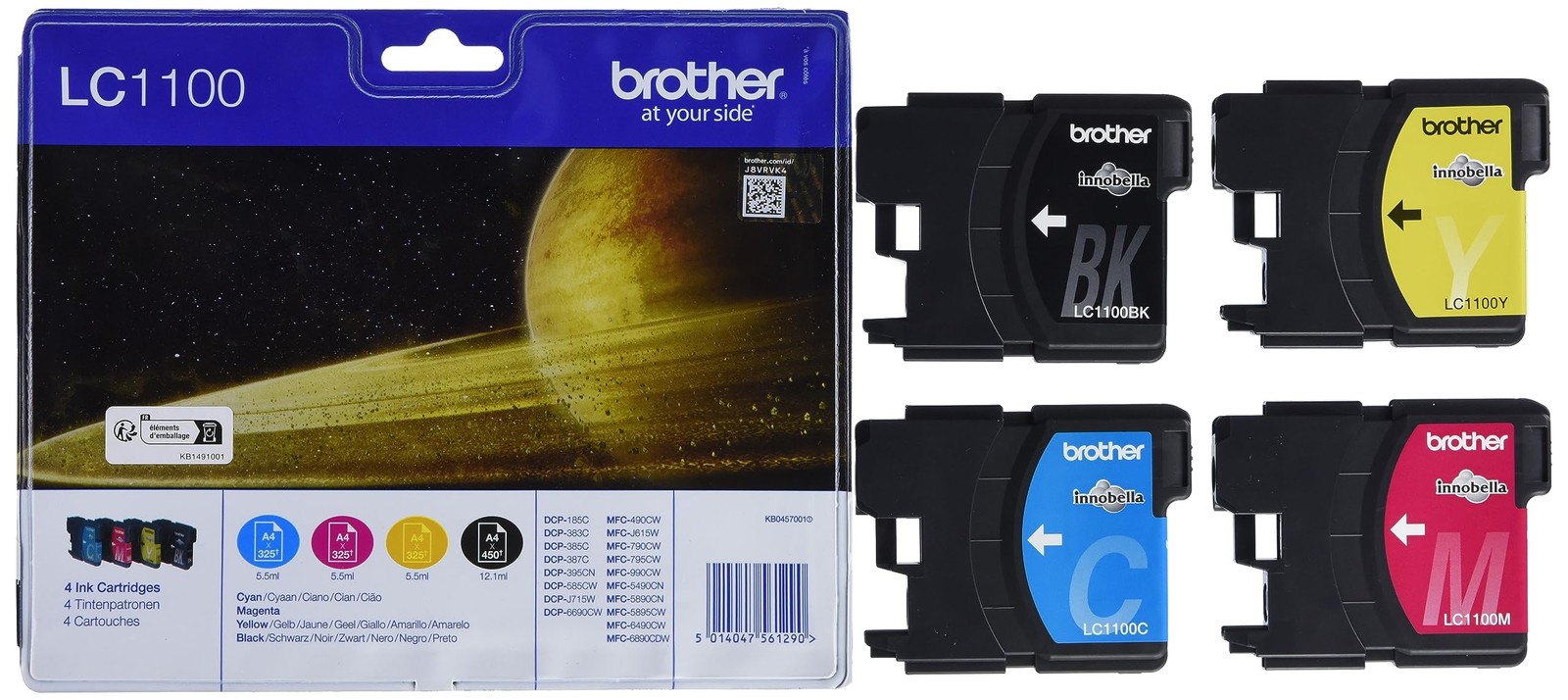 Brother LC-1100BK/LC-1100C/LC-1100M/LC-1100Y Inkjet Cartridges, Black/Cyan/Magenta/Yellow, Multi-Pack, Standard Yield, Includes 4 x Inkjet Cartridges,