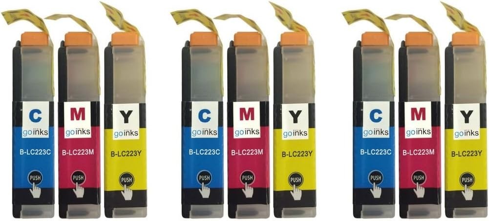 Compatible 3 Go Inks Set of 3 C/M/Y Ink Cartridges to replace Brother LC223 / non-OEM for Brother DCP & MFC Printers (9 Inks)