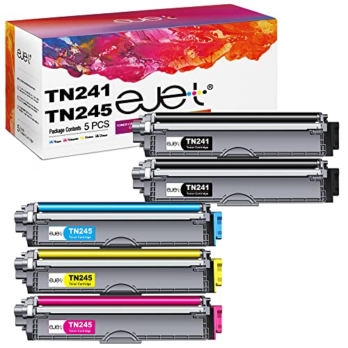 ejet 5 Pack TN241 TN245 Toner Cartridges for Brother TN-241 TN-245 Compatible for DCP-9020CDW DCP-9015CDW HL-3140CW HL-3150CDW HL-3170CDW MFC-9330CDW MFC-9340CDW (2 Black/1 Cyan/1 Magenta/1 Yellow)