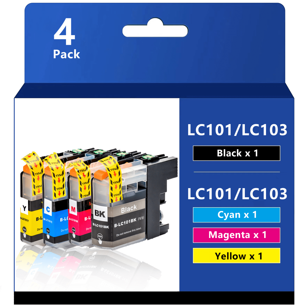 LC101/103 Ink Cartridges Compatible with Brother MFC-J4310DW, J4410DW, J4510DW, J4610DW, J4710DW, J6520DW, J6720DW, J6920DW, J285DW, J470DW (4 Pack)