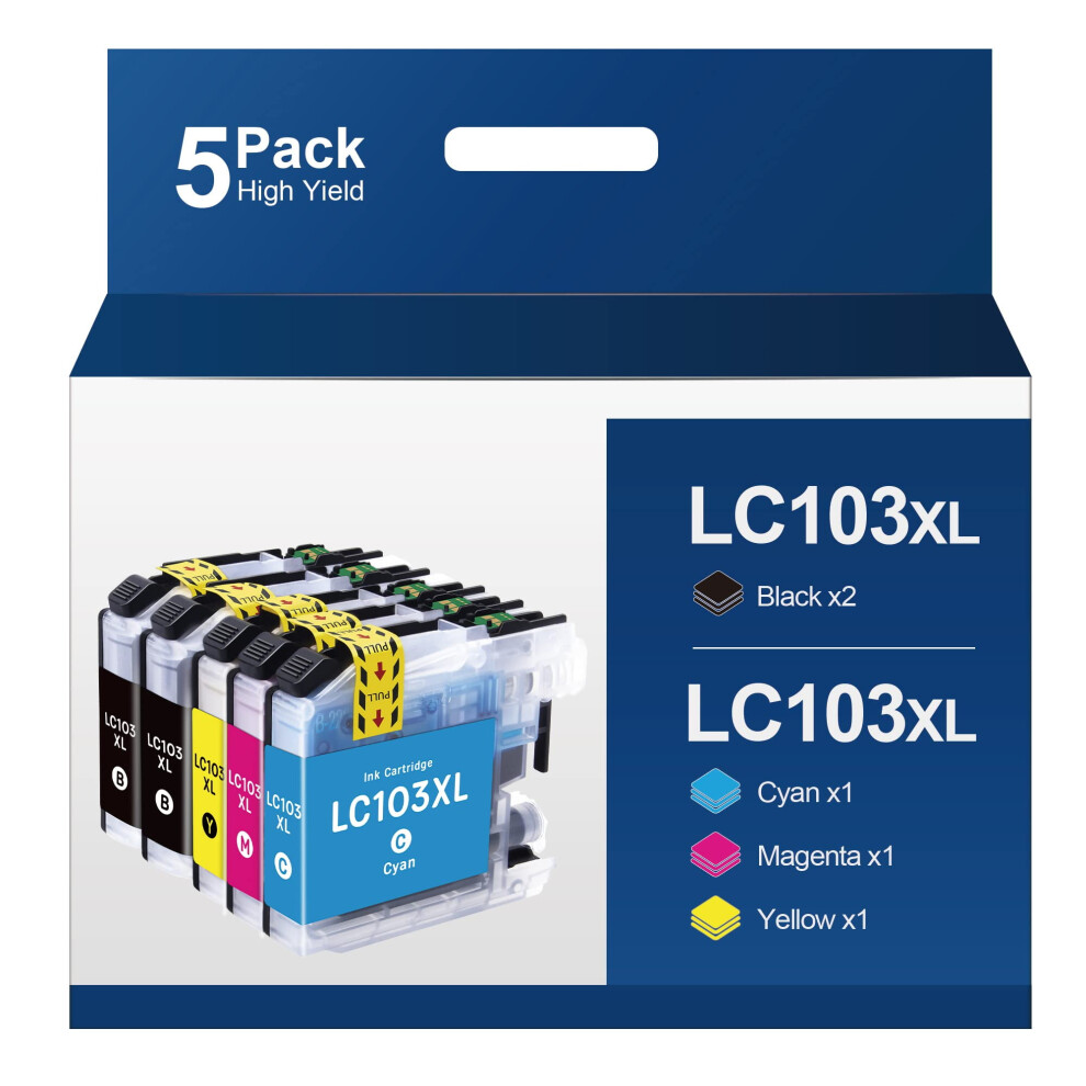 LC103XL Ink Cartridge 5-Pack Compatible with Brother LC103XL, for DCP-J152W MFC-J245 J870DW J6520DW J6920DW J450DW J470DW (Y,C,BK,M)