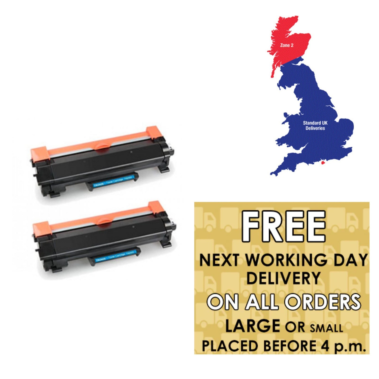 2 x BLACK High Cap Compatible TONER TN2420 fits BROTHER HL-L2350DW Printer